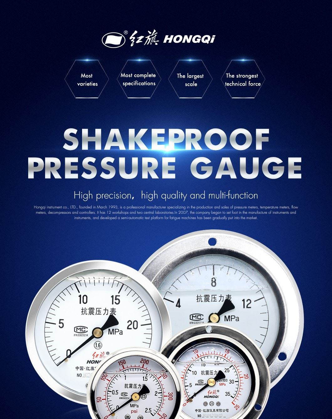 ঝাঁকুনি প্রতিরোধের চাপ গেজ প্রধানত ধাতুবিদ্যা শিল্প, পাওয়ার স্টেশন, তেল শিল্প, রাসায়নিক শিল্প, এবং তাই ব্যবহৃত হয়। স্যাঁতসেঁতে তেল এই গেজের ভিতরে ভরা হয় এবং সেই অনুযায়ী বাফারের সাথে এটির চমৎকার ঝাঁকুনি প্রতিরোধ ক্ষমতা রয়েছে। এবং এটি সেই সমস্ত মাধ্যমগুলি পরিমাপের জন্য উপযুক্ত যা শক্তিশালী স্পন্দন বা চাপের সংকোচন বা পরিষেবা মাধ্যম যা উত্পাদনের সময় হঠাৎ অদৃশ্য হয়ে যায়, বা এমন পরিস্থিতি যা হিংস্রভাবে কাঁপতে থাকে। এই গেজটি গ্যাস বা তরলের স্পন্দনশীল চাপের গড় মান পরিমাপ করতে পারে, যাতে এটি শক্তিশালী স্পন্দন এবং হিংস্র ঝাঁকুনি দ্বারা সৃষ্ট ক্ষতি এড়াতে পারে এবং পরিমাপের সুনির্দিষ্ট বিমা করতে পারে। স্টেইনলেস শেক প্রতিরোধের চাপ গেজের বাইরের কেস। স্টেইনলেস স্টীল উপাদান দিয়ে তৈরি পরিবেশে ব্যবহার করা যেতে পারে যার শক্তিশালী ক্ষয় এবং হিংস্র ঝাঁকুনি রয়েছে।